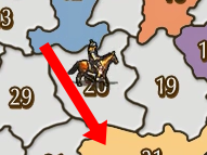 中汐の国(17)から山求の国(21)に向かって馬がトコトコと向かいます。