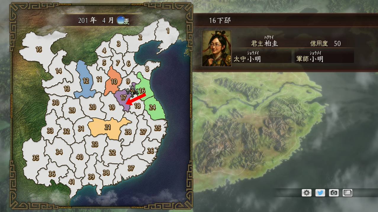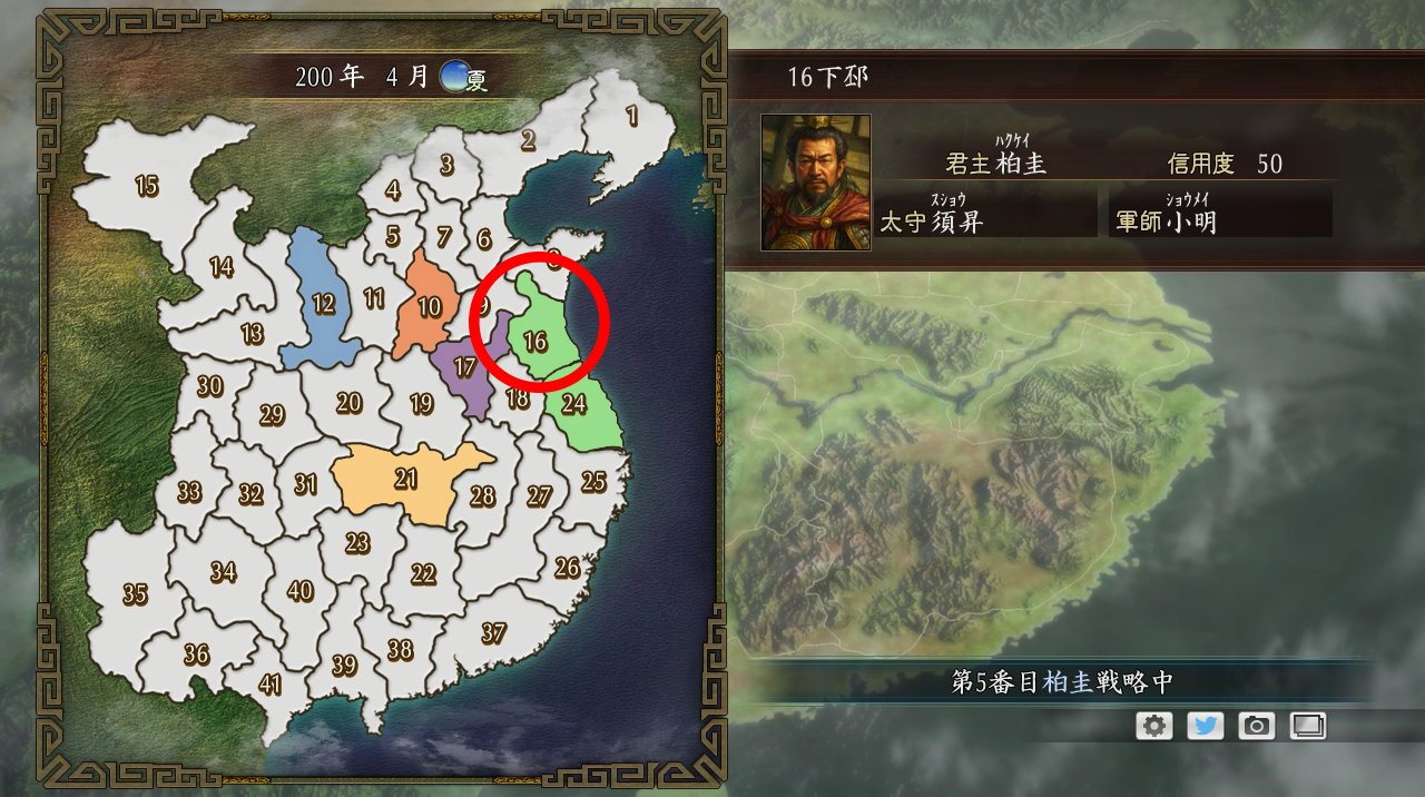 ここで地図を見ると、柏圭国が須昇を太守(今の県知事のようなもの)にして、いつのまにか領土を拡大していました。